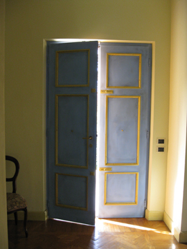 Detail of antique door / metallic gold with Venetian blue / acrylic